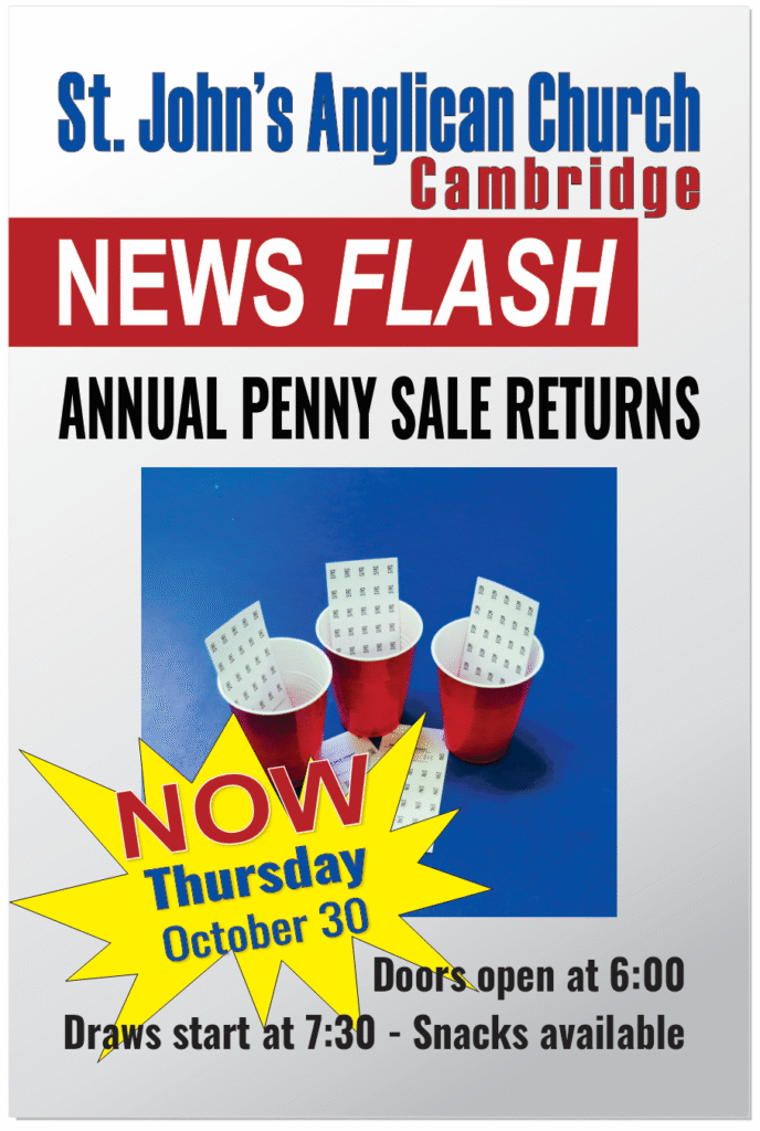 Join us for our annual Penny Sale, this year on Thursday October 30th since Halloween is on the last Friday in October. Look forward to seeing you there!